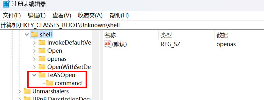 计算机\HKEY_CLASSES_ROOT\Unknown\shell\LeASOpen